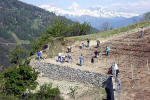 retraités bénévoles qui s'occupent de la vigne qu'il faut protéger des